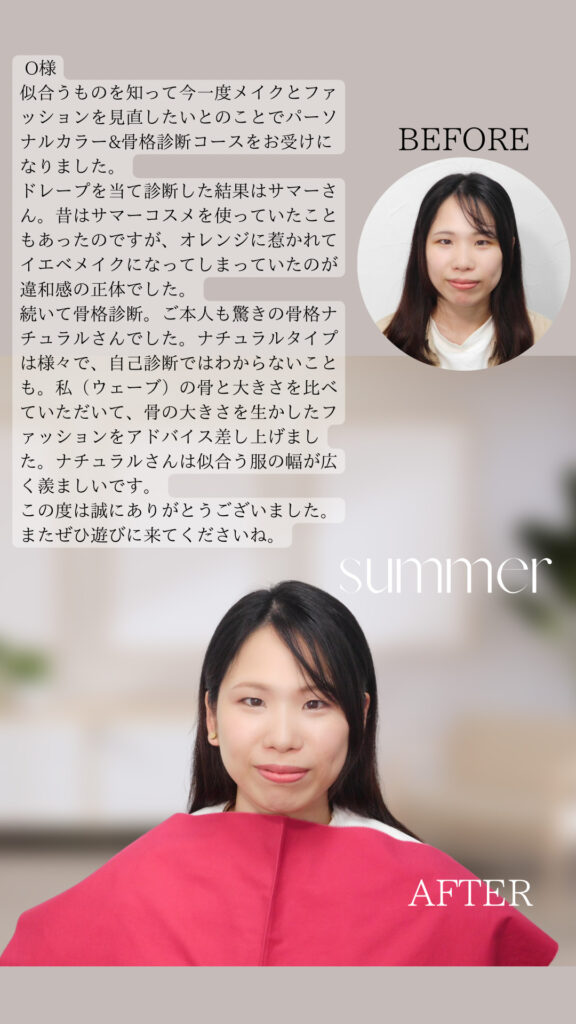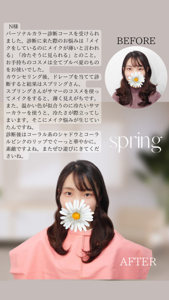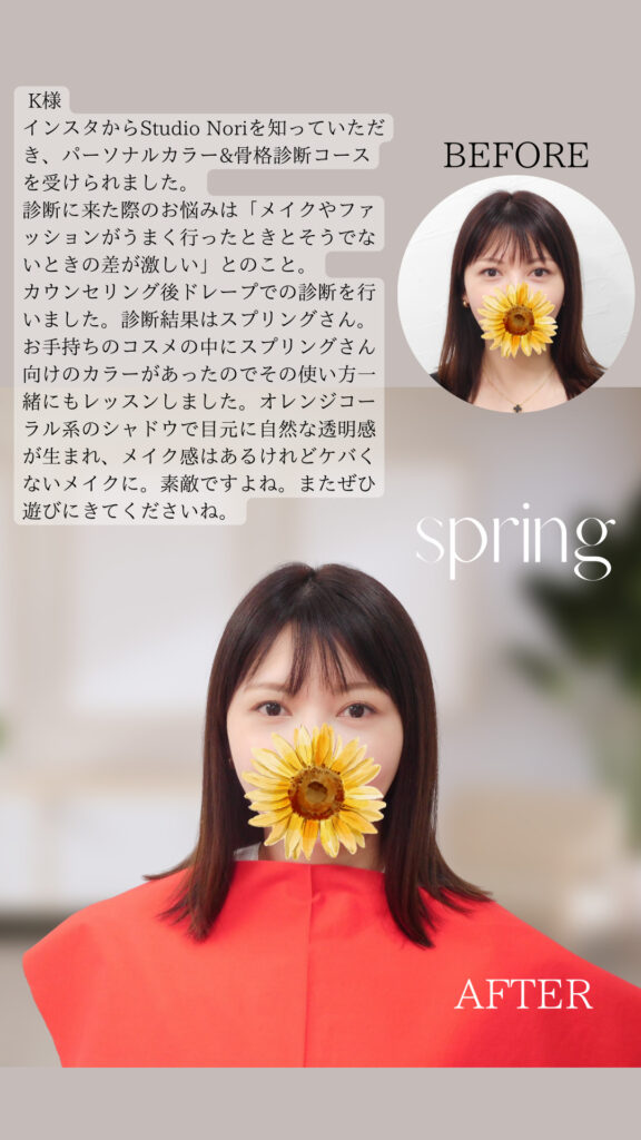 Studio Noriのパーソナルカラー診断・骨格診断・メイクレッスンは、その日からすぐに変われる魔法のレッスンです。