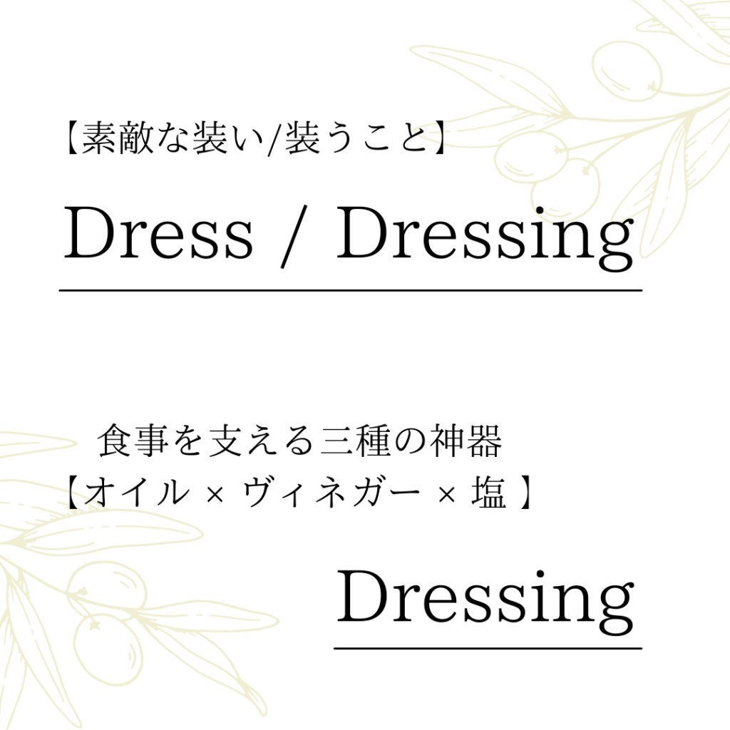 食事を支える3種の神器【オイル・ヴィネガー・塩=Dressing】から名付けました。