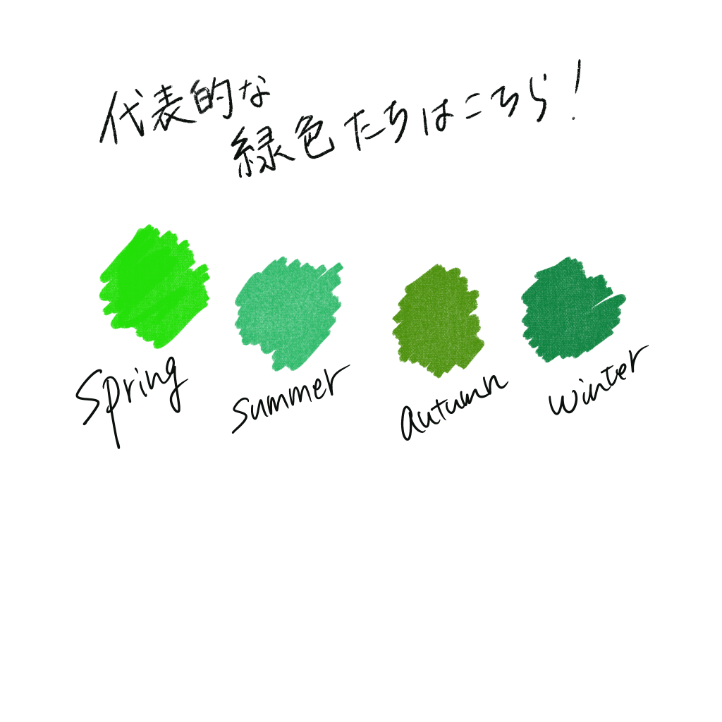 似合う緑は各パーソナルカラーで異なります。こんな感じ。