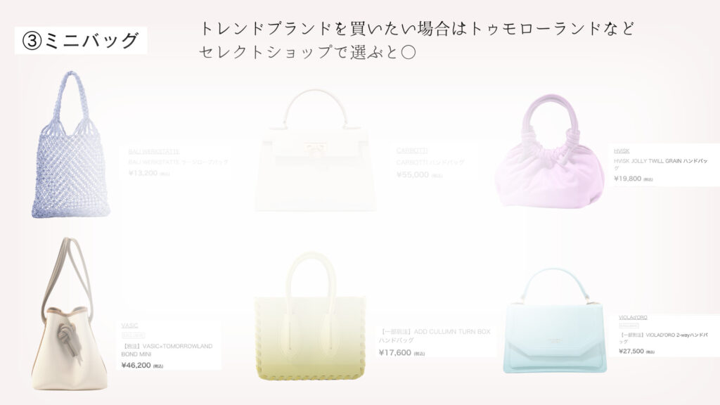 もちろん、アクセサリーやバッグ、シューズはこだわりのブランドがある方も多いですから、その場合にはそこに予算を割いて服はプチプラでも全然OKです。