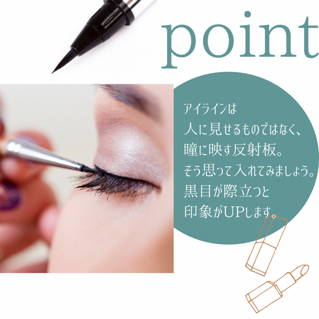 ですが、メイクレッスンの資格を取るときに、なぜアイラインを入れるべきなのかを先生に教えていただいたことで断然入れる派に変わりました。