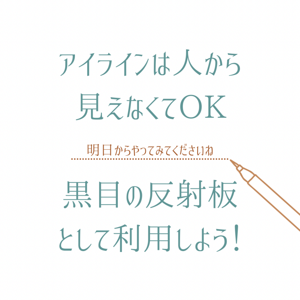 また、マスカラをしっかり根元からつけられる人はそれを反射板代わりにして、目尻だけアイラインで線を付け足すのも良いと思います。