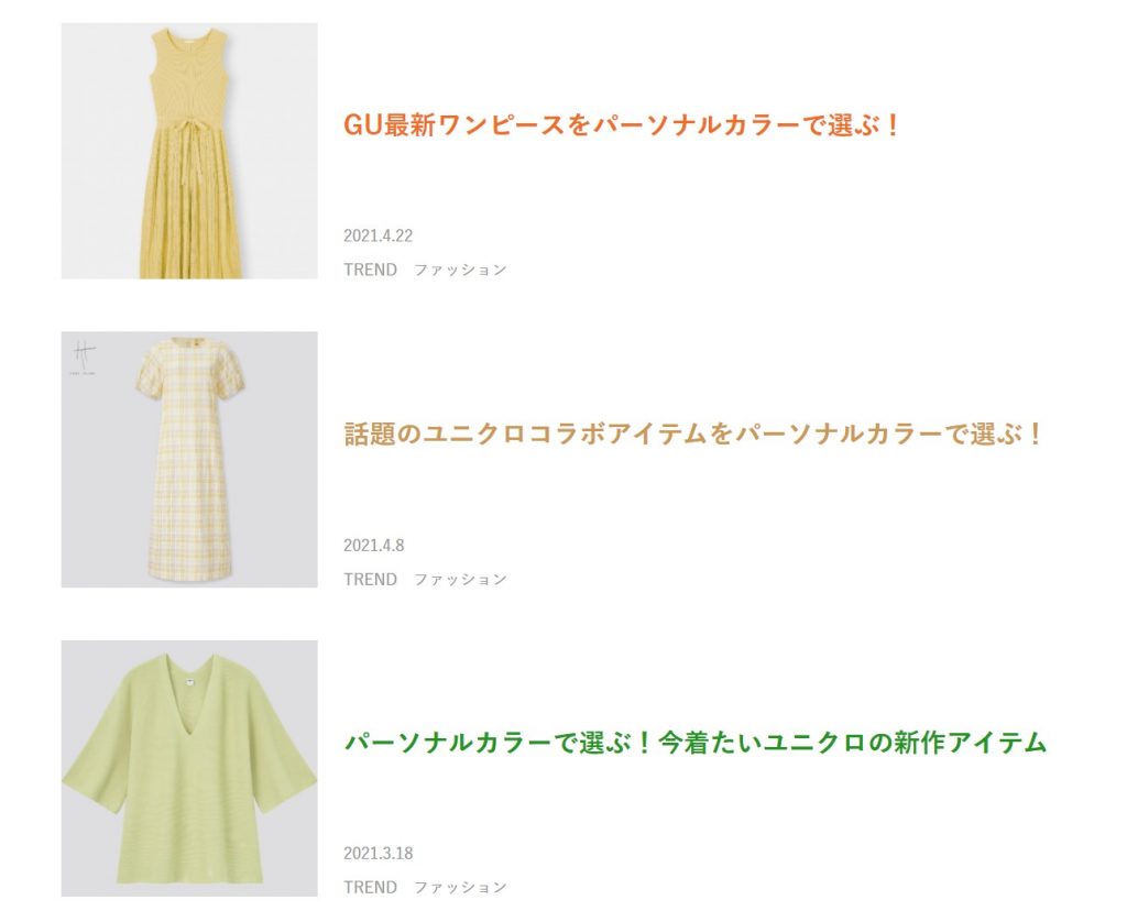 例えば今はブラウンカラーがブームなので、ユニクロもGUもとにかくブラウンやテラコッタが豊富です。でも全部載せようとするとオータムさんの紹介枠がすべて茶色系になってしまうので、さすがに他の色も着たいよね…とおもってイエローやグリーンの紹介を増やしたりしています。笑