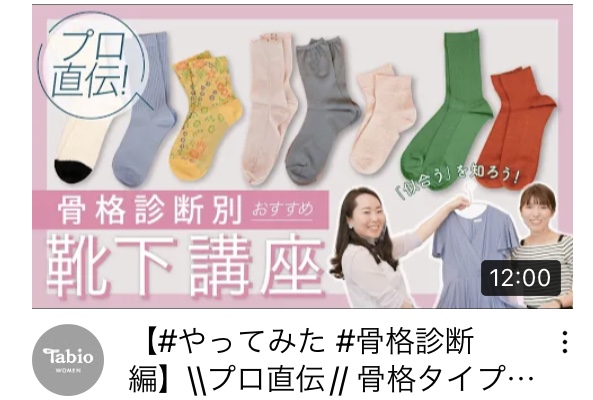 素敵な靴下の品ぞろえで有名なタビオ株式会社様のYouTubeチャンネル「Tabio WOMEN チャンネル」に骨格診断アナリストとして出演いたしました。