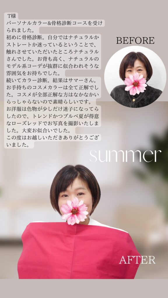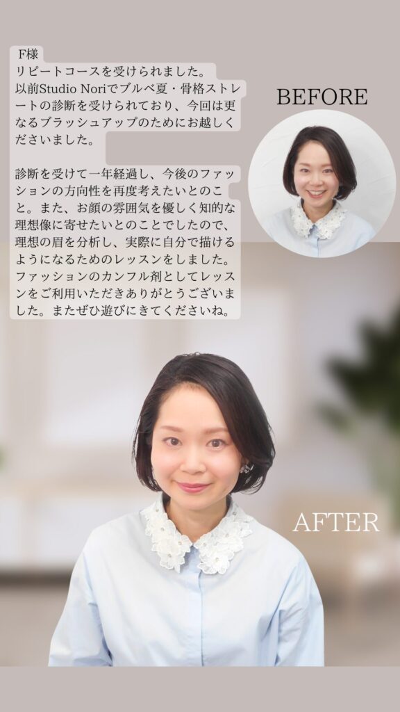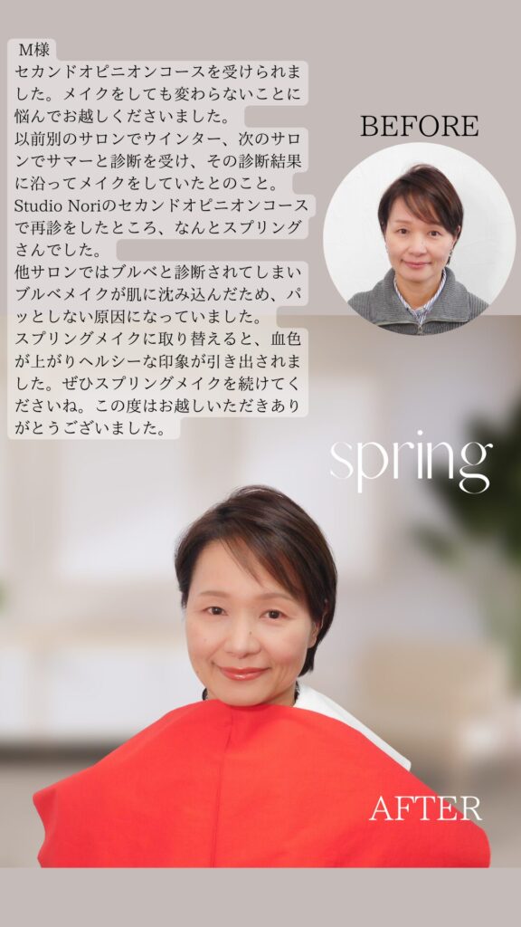Studio Noriのパーソナルカラー診断・骨格診断・メイクレッスンは、その日からすぐに変われる魔法のレッスンです。