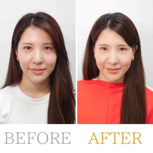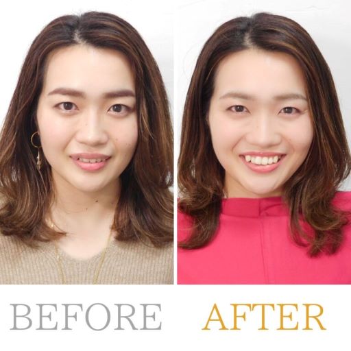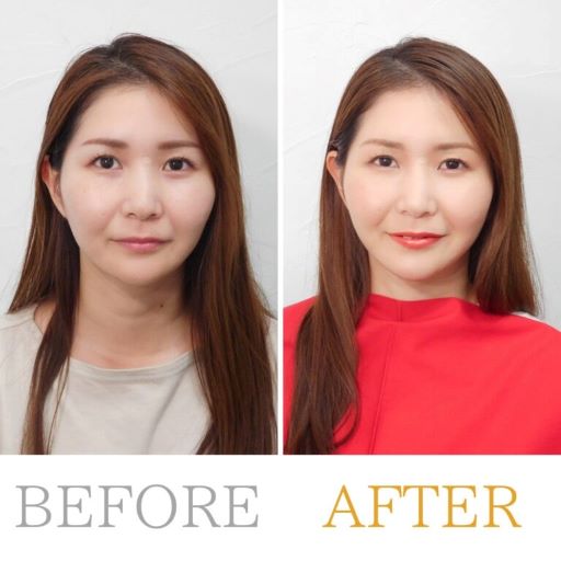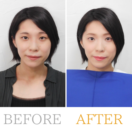 パーソナルカラー診断とパーソナルカラーを使ったフルメイクをした場合のbefore→afterです。(※写真はご本人の許可を得て掲載しております)
